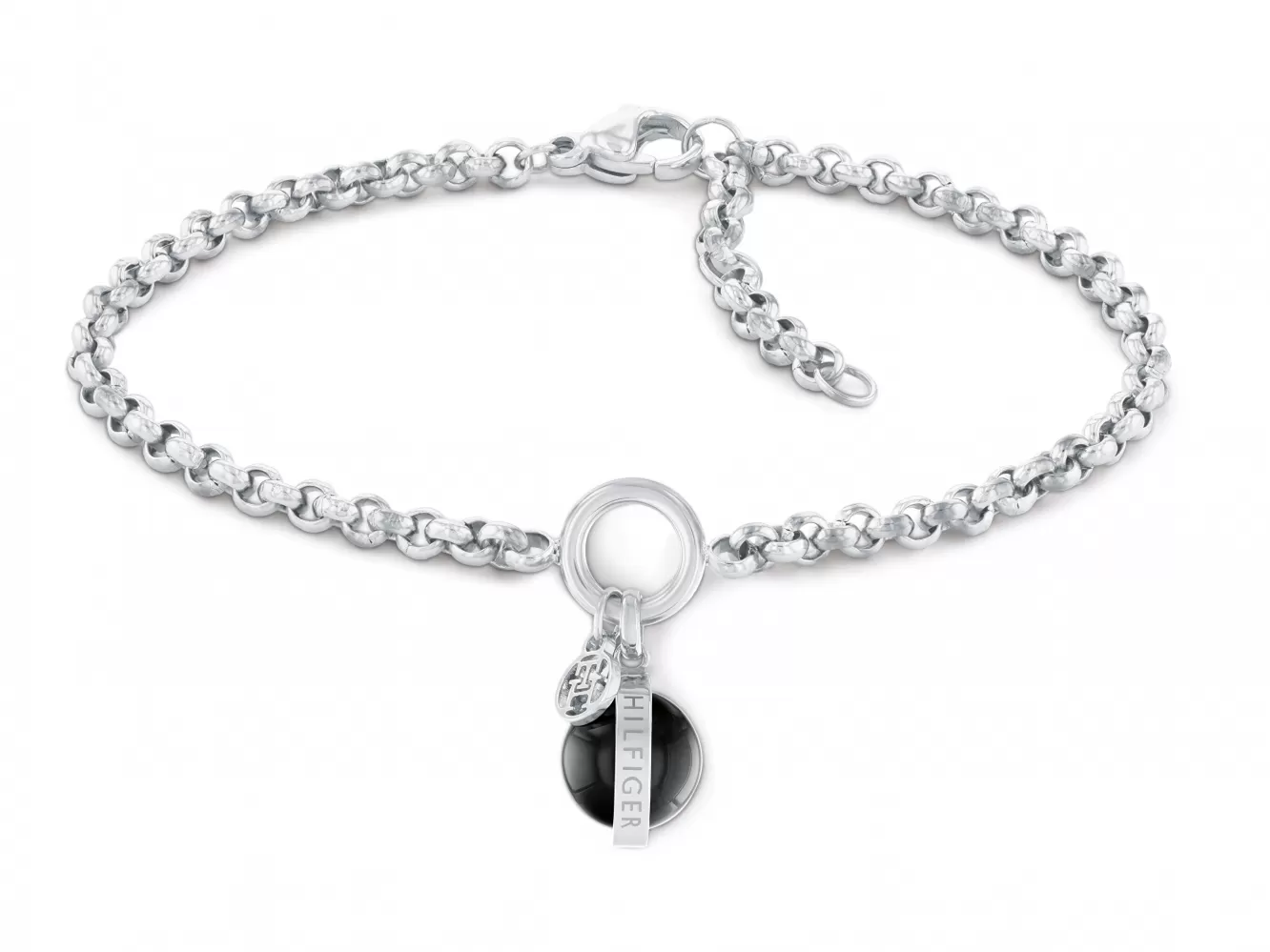 Moderný náramok z chirurgickej ocele od značky Tommy Hilfiger. Náramok je zdobený príveskom v ktorom je vsadený onyx. Nechýba na ňom ani nápis a logo značky. Ozdobte sa týmto šperkom.