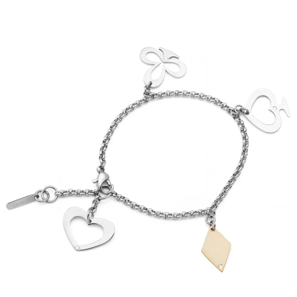 Náramok je vyrobený chirurgickej ocele s príveskami v tvare kartových symbolov so žltým pozlátením silnou technológiou PVD v lesklej povrchovej úprave. Náramok sa zapína na karabínku. Na náramku je zobrazená značka Sagapó.