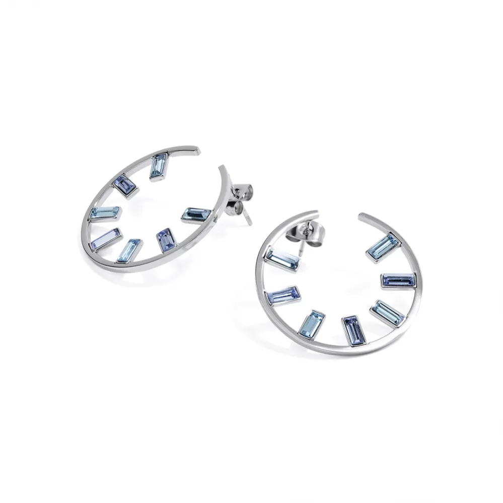 Videli ste už takýto originálny model dámskych náušníc? Náušnice sú vyrobené z kvalitnej nehrdzavejúcej ocele, ktorá je vyleštená do vysokého lesku. Náušnice sú zvýraznené kryštálmi Swarovski v modrej farbe, ktoré sú precízne vybrúsené do obdĺžnikového tvaru. Zaujmite originálnym kúskom. Náušnice sa zapínajú na cvočky.