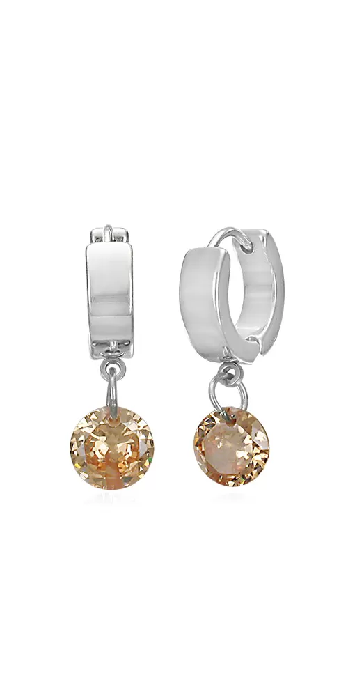 Visiace náušnice krúžky z ocele s hnedým zirkónom v lesklej povrchovej úprave.