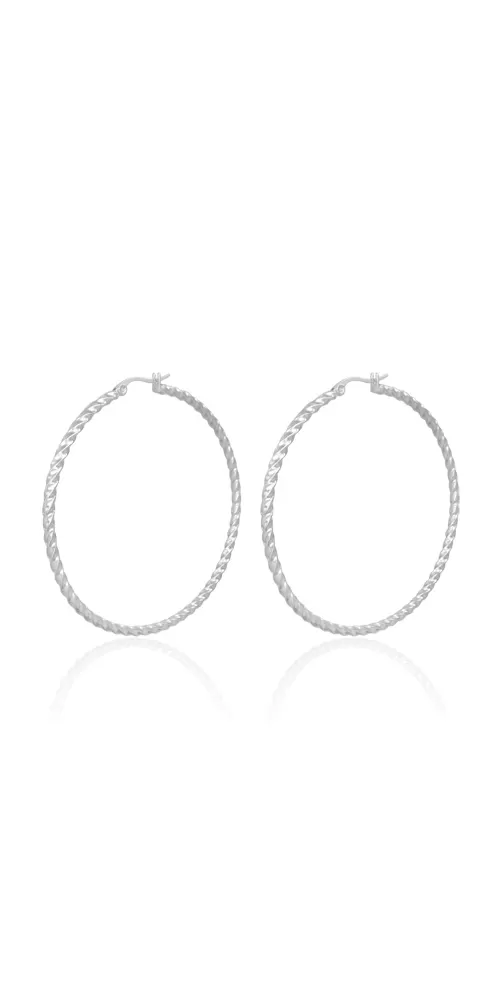 Stredne veľké krútené náušnice kruhy sú vyrobené z chirurgickej ocele v lesklej povrchovej úprave. Chirurgická oceľ vyniká svojou farebnou stálosťou a nespôsobuje alergické reakcie.