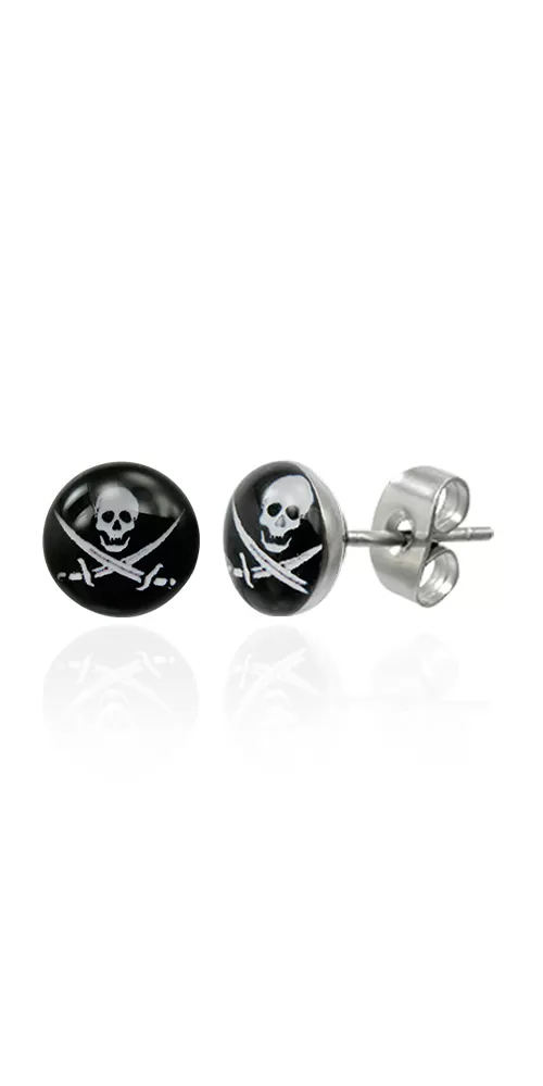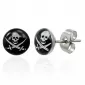 Náušnice kôstky vyrobené z chirurgickej ocele so zapínaním na puzety v lesklej povrchovej úprave. Motív na náušničkách je v štýle čierneho pozadia s lebkou.
