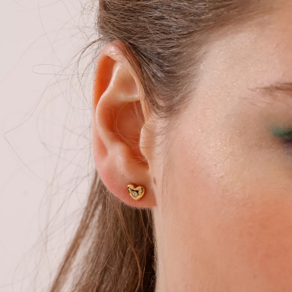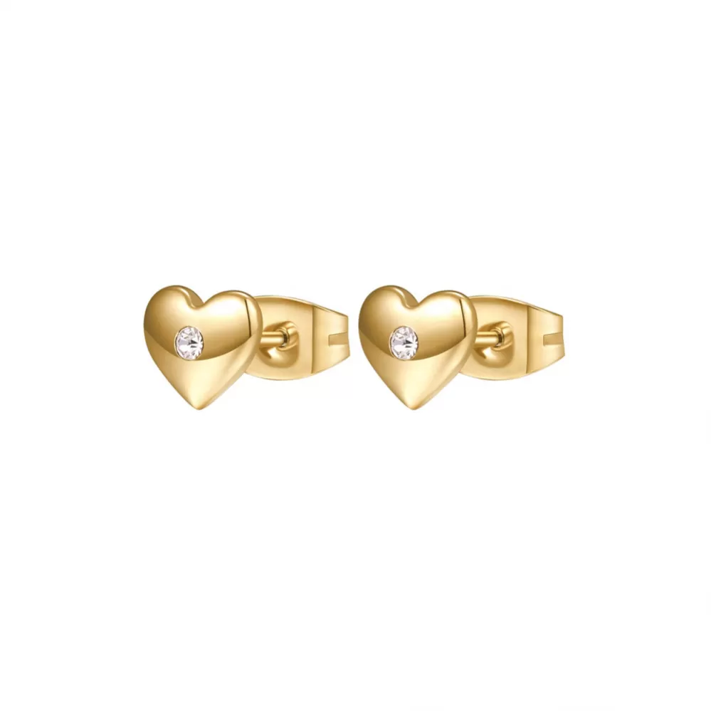Roztomilé náušnice kôstky sú vyrobené z vysoko leštenej nerezovej ocele, ktorá je ošetrená PVD povrchovou úpravou vo farbe žltého zlata. Náušnice v tvare srdiečok ocenia nielen ženy ale aj dievčatá. >