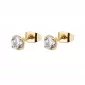 Veľmi obľúbený model dámskych náušníc je vyrobený u vysoko kvalitnej ušľachtilej ocele, ktorá je ošetrená PVD povrchovou úpravou vo farbe žltého zlata. Náušnice zdobia prvotriedne Swarovski kryštály.