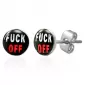 Náušnice s nápisom Fuck off sú vyrobené z chirurgickej ocele so zapínaním na puzety v lesklej povrchovej úprave.