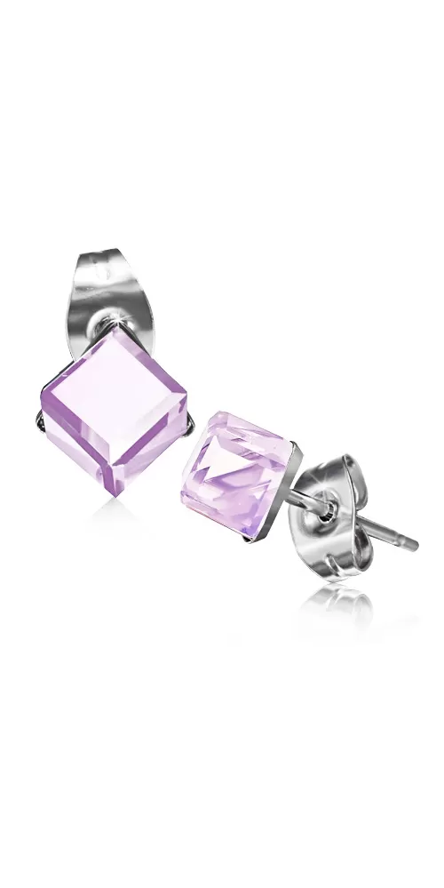 Decentné náušnice so svetlo ružovým kryštálom v tvare kocky sú vyrobené z chirurgickej ocele v lesklej povrchovej úprave. Zapínanie náušníc je na puzete. Náušnice sa hodia na akúkoľvek príležitosť aj na bežné denné nosenie.