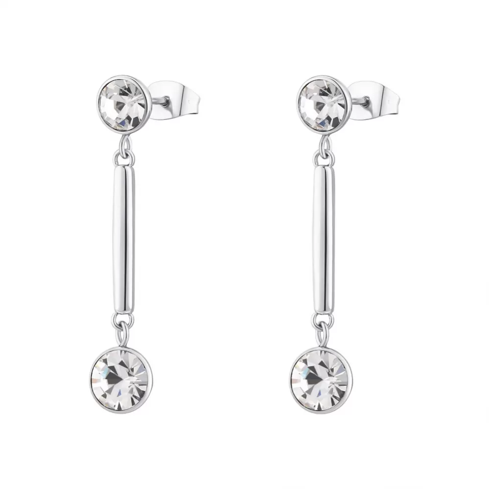 Vysoko elegantné dámske náušnice sú vyrobené z kvalitnej ušľachtilej ocele v lesklej povrchovej úprave. Náušnice zdobia kryštály Swarovski a dokonale dotvárajú elegantný dizajn náušníc. Jednoduché zapínanie vo forme puzet, Vás určite poteší.