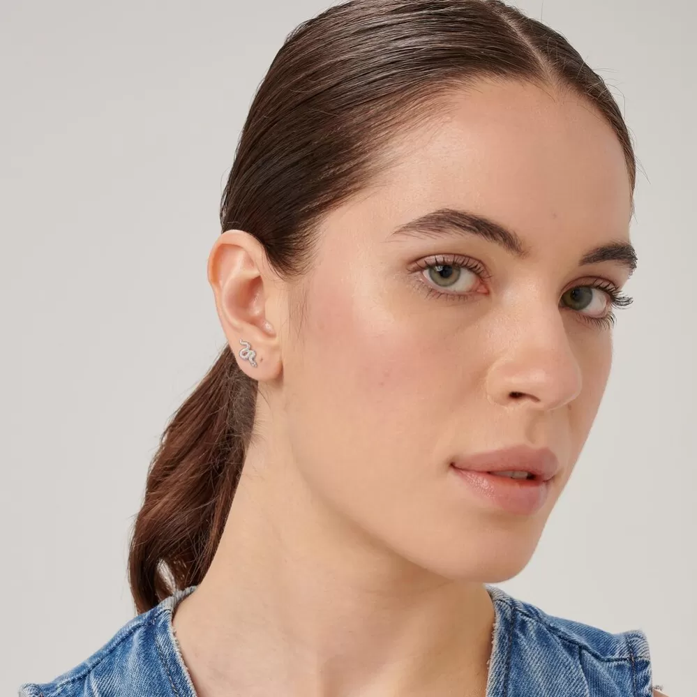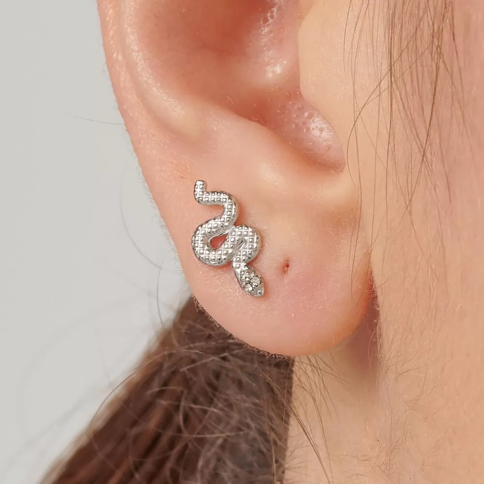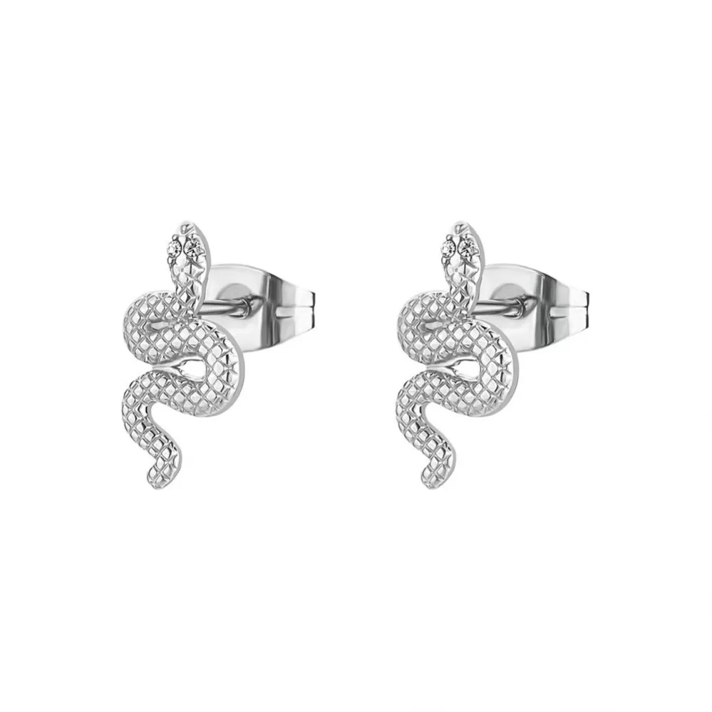 Originálne visiace náušnice sú vyrobené z vysoko kvalitnej nerezovej ocele. Náušnice sú štylizované do tvaru hada, ktorému namiesto očí svietia Swarovski kryštály.