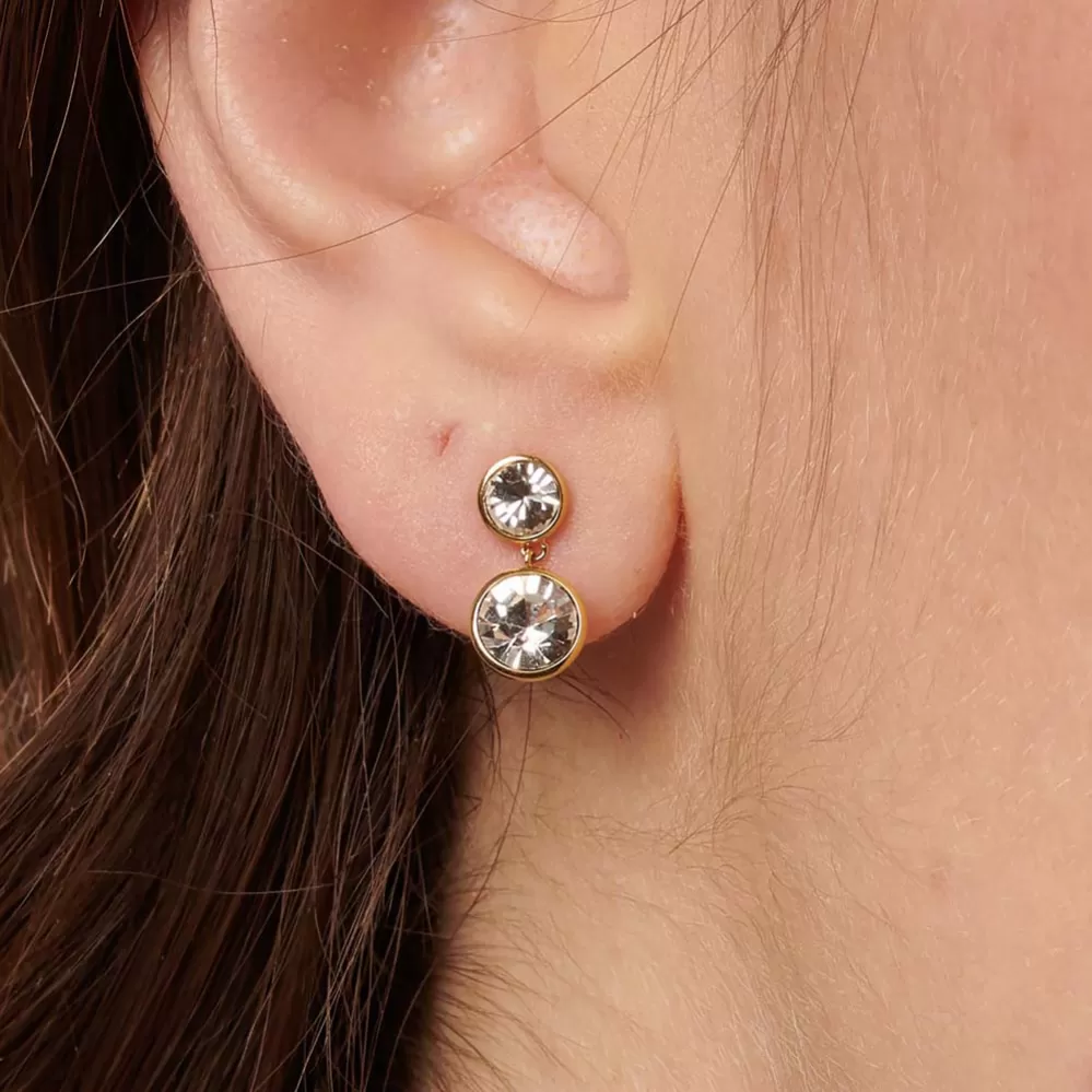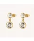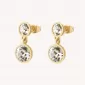 Ozdobte sa žiarivými náušnicami, ktoré nikto neprehliadne. Náušnice sú vyrobené z vysoko kvalitnej nerezovej ocele so zapínaním na puzety. Oceľ je ošetrená PVD povrchovou úpravou vo farbe žltého zlata. Visiace náušnice zdobia dva okrúhle Swarovski kryštály, ktoré rozžiarite každým Vašim pohybom. Trblietanie a lesk kryštálov si zamilujete.