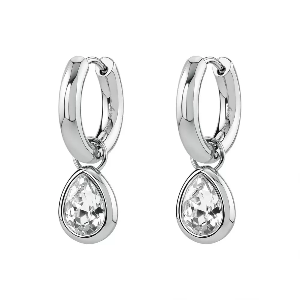 Vysoko elegantné náušnice sú vyrobené z nehrdzavejúcej ocele. Náušnice kruhového tvaru sú zdobené kryštálom Swarovski, vybrúseným do tvaru kvapky, ktorý sa rozžiari pri každom vašom pohybe. Tento elegantný štýl náušníc je vhodný na každodenné nosenie aj spoločenské nosenie.