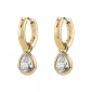 Vysoko elegantné náušnice sú vyrobené z nehrdzavejúcej ocele. Oceľ je ošetrená PVD povlakom vo farbe žltého zlata. Náušnice kruhového tvaru sú zdobené kryštálom Swarovski, vybrúseným do tvaru kvapky, ktorý sa rozžiari pri každom vašom pohybe. Tento elegantný štýl náušníc je vhodný na každodenné nosenie aj spoločenské nosenie.