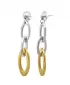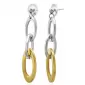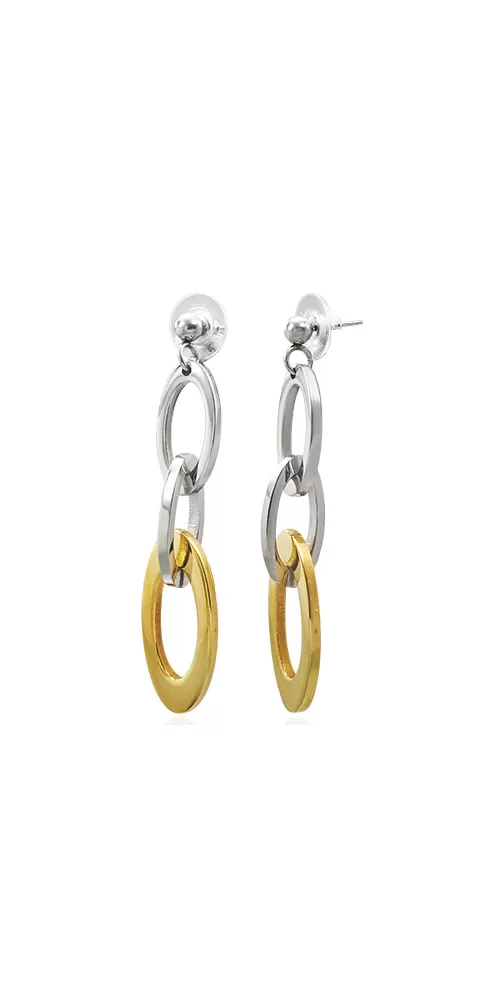 Náušnice zložené z troch oválov rôznej veľkosti zavesených do seba, vyrobené z chirurgickej ocele so silným pozlátením technológií PVD v kombinácii lesklej a matnej povrchovej úprave.