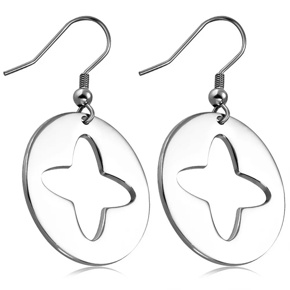 Módne visiace náušnice vyrobené z chirurgickej ocele v lesklej povrchovej úprave. Tieto náušnice majú zapínanie na háčik.