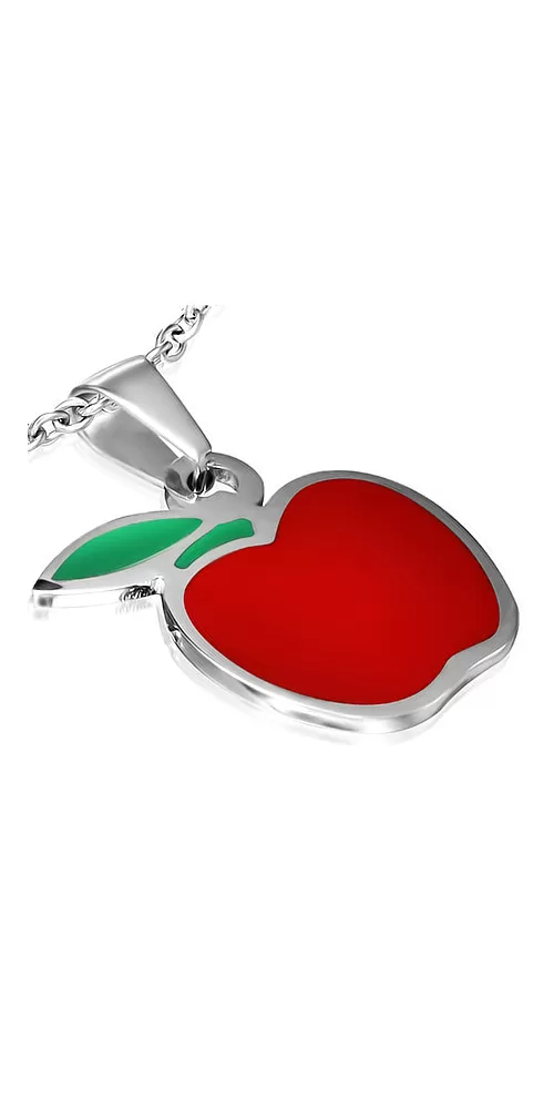 Oceľový prívesok v tvare jabĺčka je vyrobený z chirurgickej ocele, ktorá vyniká svojou farebnou stálosťou a nespôsobuje alergické reakcie. Prívesok je vyrobený v lesklej povrchovej úprave so sfarbením technológií PVD. Pre prívesok je vhodné použiť retiazku s max. priemerom 3,50 mm