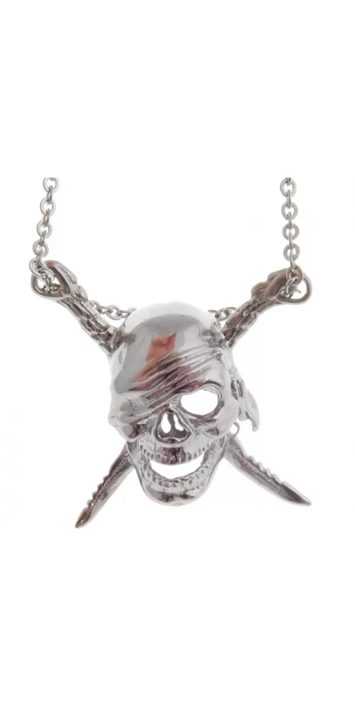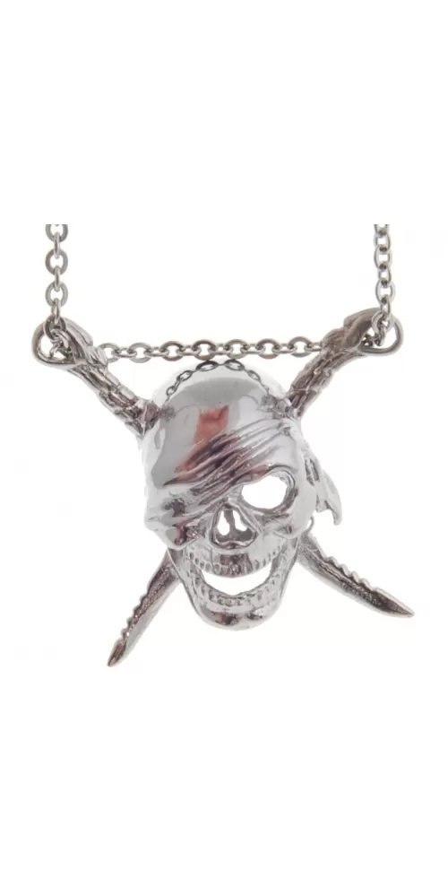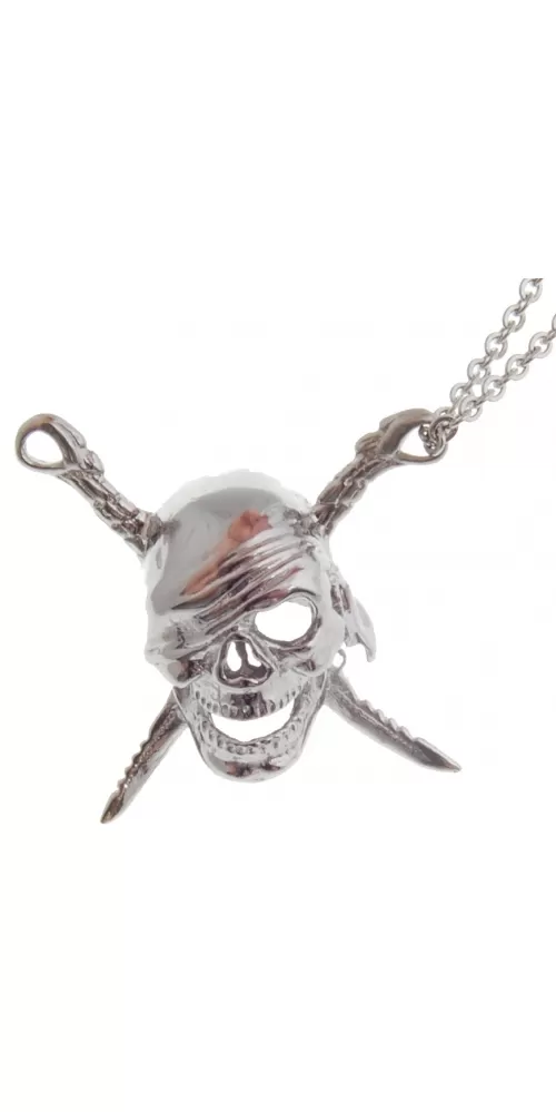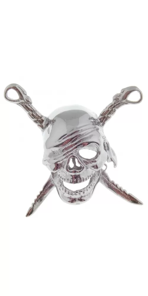 Moderný veľký plastický prívesok z chirurgickej ocele v tvare pirátskej lebky so skríženými nožmi v lesklej povrchovej úprave. Na doplňujúcu… Celý popis