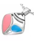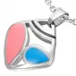 Prívesok s farebným ružovým a modrým smaltom je vyrobený z chirurgickej ocele v lesklej povrchovej úprave.