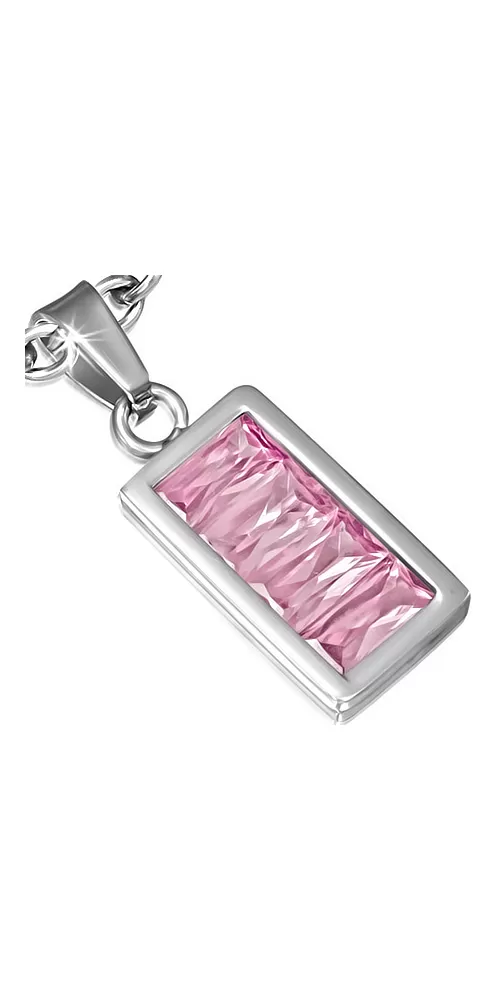 Prívesok s ružovým kameňom z chirurgickej ocele v lesklej povrchovej úprave.