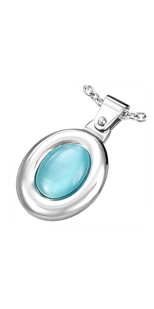 Prívesok s modrým kameňom z chirurgickej ocele v lesklej povrchovej úprave.
