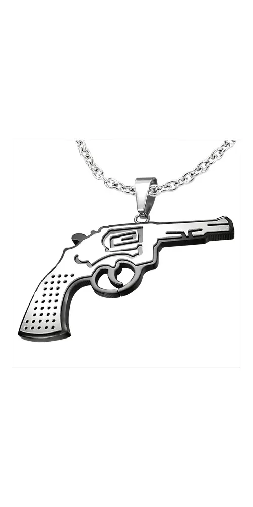 Revolver - prívesok vyrobený  z chirurgickej ocele v lesklej povrchovej úprave. Rozmery: dĺžka s očkom: 45 mm šírka: 50 mm Termín… Celý popis