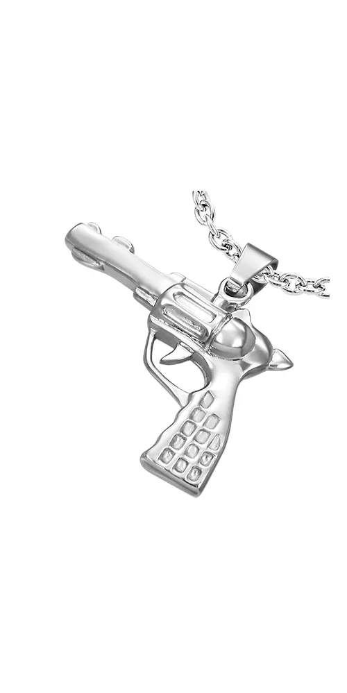 Revolver - prívesok vyrobený z chirurgickej ocele v lesklej povrchovej úprave.