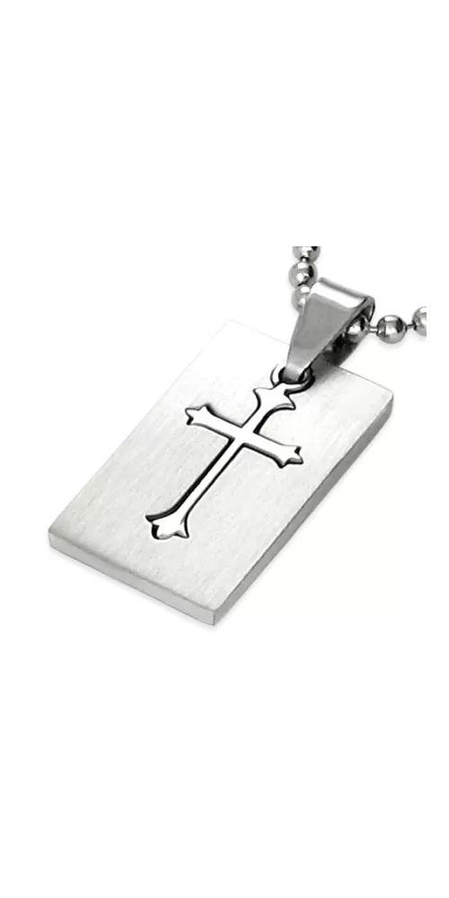 Dostička s vyberacím krížikom je zhotovená z kvalitnej chirurgickej ocele, ktorá vyniká svojou farebnou stálosťou a zároveň si zaručuje svoju istotu, že nespôsobuje alergické reakcie. Prívesok je vyrobený v kombinácii matnej a lesklej povrchovej úpravy.