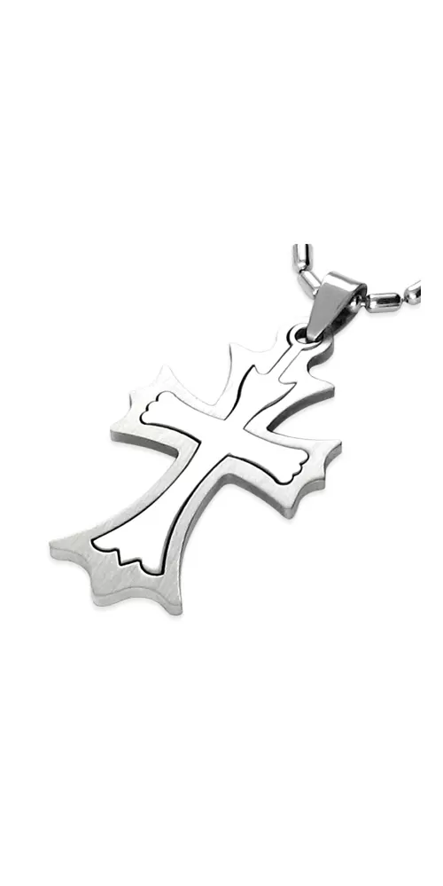 Prívesok - kríž z chirurgickej ocele v kombinácii lesklej a matnej povrchovej úpravy.
