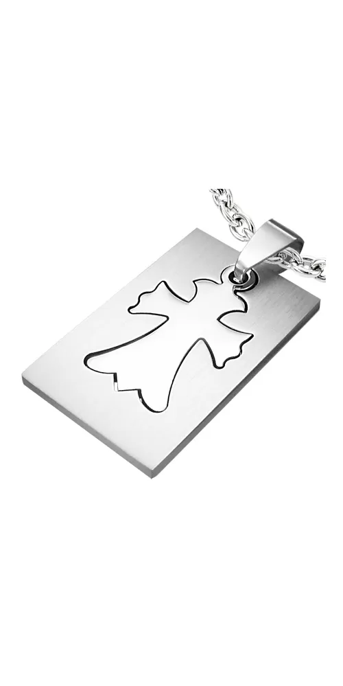 Prívesok v tvare kríža je vyrobený z chirurgickej ocele v kombinácii lesklej a matnej povrchovej úpravy. Kríž je zložený z dvoch krížov, ktoré do seba vzájomne zapadajú. K prívesku je vhodné použiť retiazku o max. priemere 3,50 mm.