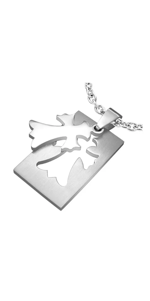 Prívesok v tvare kríža je vyrobený z chirurgickej ocele v kombinácii lesklej a matnej povrchovej úpravy. Kríž je zložený z dvoch krížov, ktoré do… Celý popis