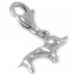 Veľmi pekný moderný menší plastický prívesok na náramok vyrobený z chirurgickej ocele v tvare pes v lesklej povrchovej úprave.