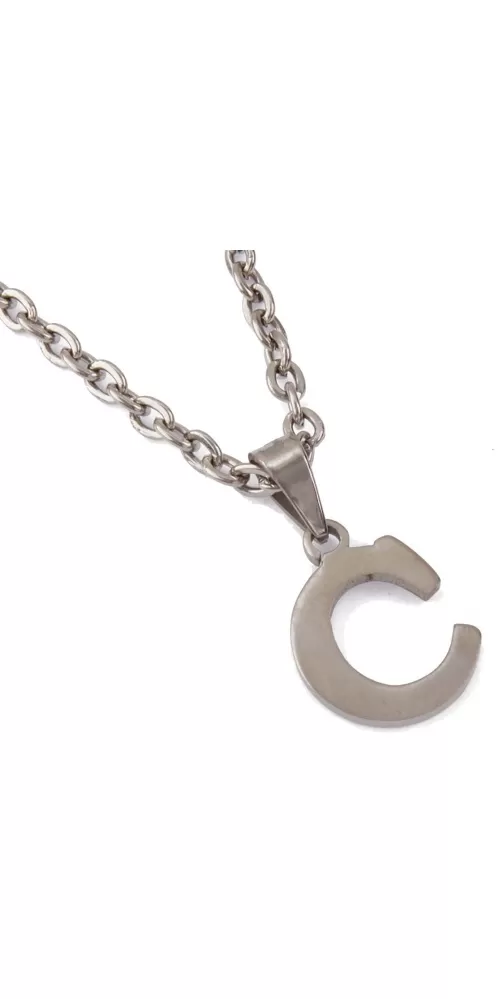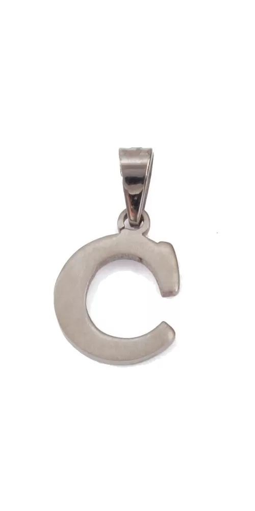Písmenko C vyrobené z chirurgickej ocele v matnej povrchovej úprave s lesklým závesným očkom.