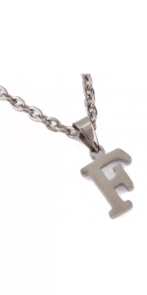 Písmenko F vyrobené z chirurgickej ocele v matnej povrchovej úprave.