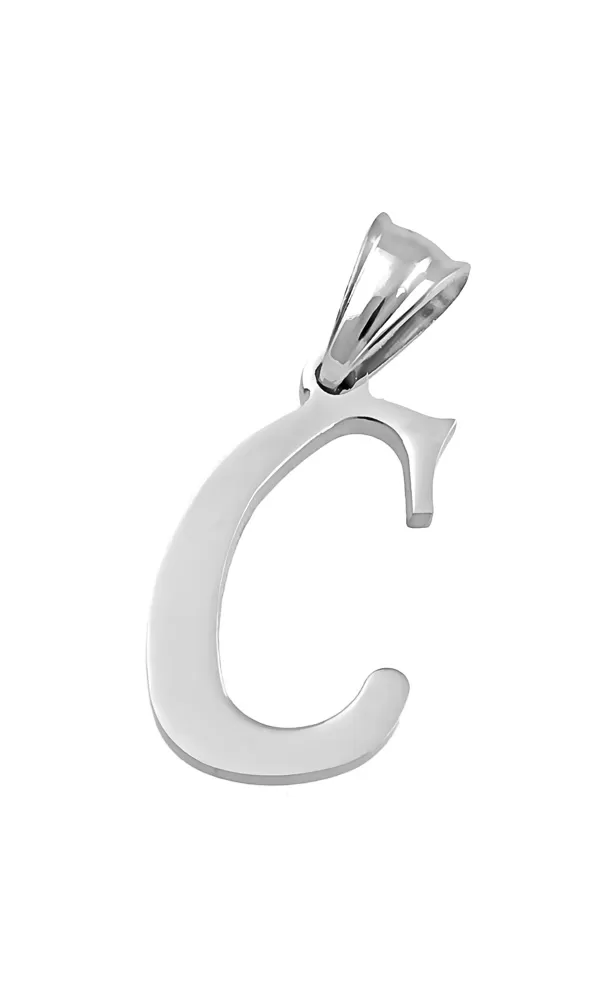 Písmenko C je vyrobené z chirurgickej ocele v lesklej povrchovej úprave s lesklým závesným očkom. Chirurgická oceľ vyniká svojou farebnou stálosťou a nespôsobuje alergické reakcie. K prívesku je možné použiť retiazku s max. priemerom 4,50 mm.