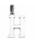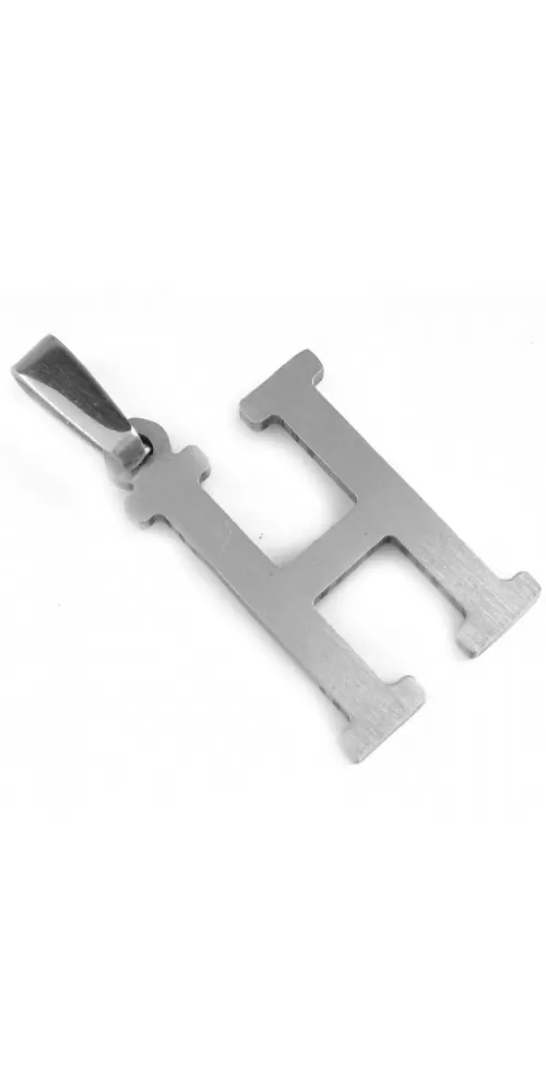 Písmenko H vyrobené z chirurgickej ocele v matnej povrchovej úprave s lesklým závesným očkom.