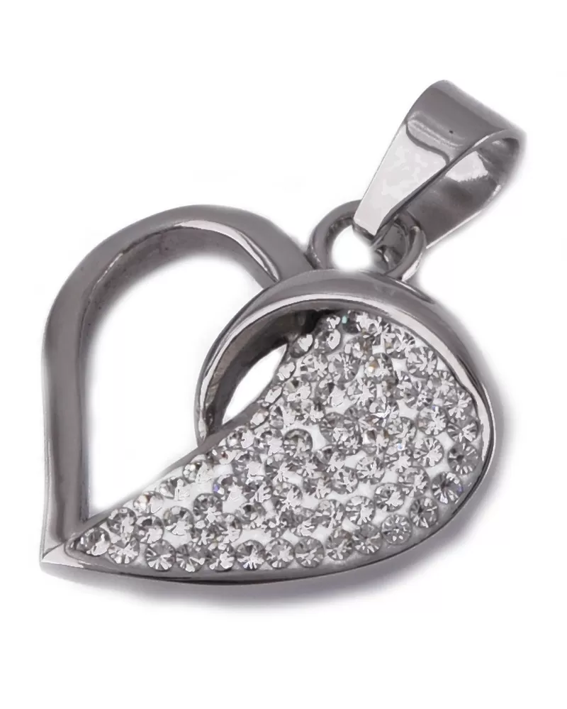 Prívesok v tvare srdca so zirkónmi vyrobenými z chirurgickej ocele v lesklej povrchovej úprave.