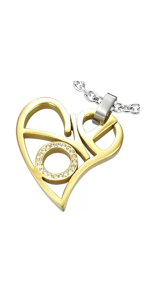 Srdce so zirkónmi - prívesok z ocele je vyrobený v kombinácii so silným žltým pozlátením technológií PVD v lesklej povrchovej úprave.