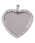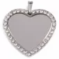 Prívesok v tvare srdca s bielymi kamienkami posádzanými po celom obvode vyrobený z chirurgickej ocele v lesklej povrchovej úprave.