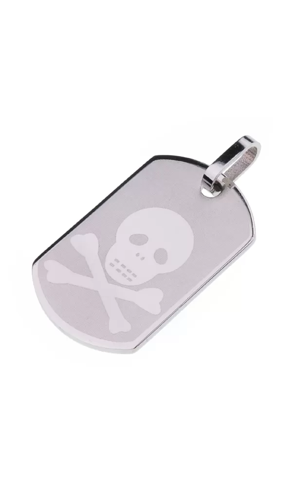 Extravagantný prívesok z chirurgickej ocele v tvare pirátskeho znaku - lebky a skrížených kostí. Prívesok je vyrobený v kombinácii lesklej a matnej povrchovej úpravy.