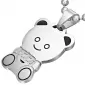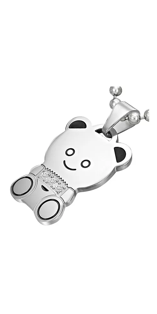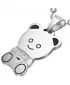 Prívesok z chirurgickej ocele v tvare medvedíka v lesklej povrchovej úprave doplnený s tromi drobnými okrúhlymi bielymi zirkónmi.