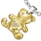 Prívesok z chirurgickej ocele so zlátením silnou technológiou PVD v tvare medvedíka v lesklej povrchovej úprave doplnený dosťmi okrúhlymi bielymi… Celý popis