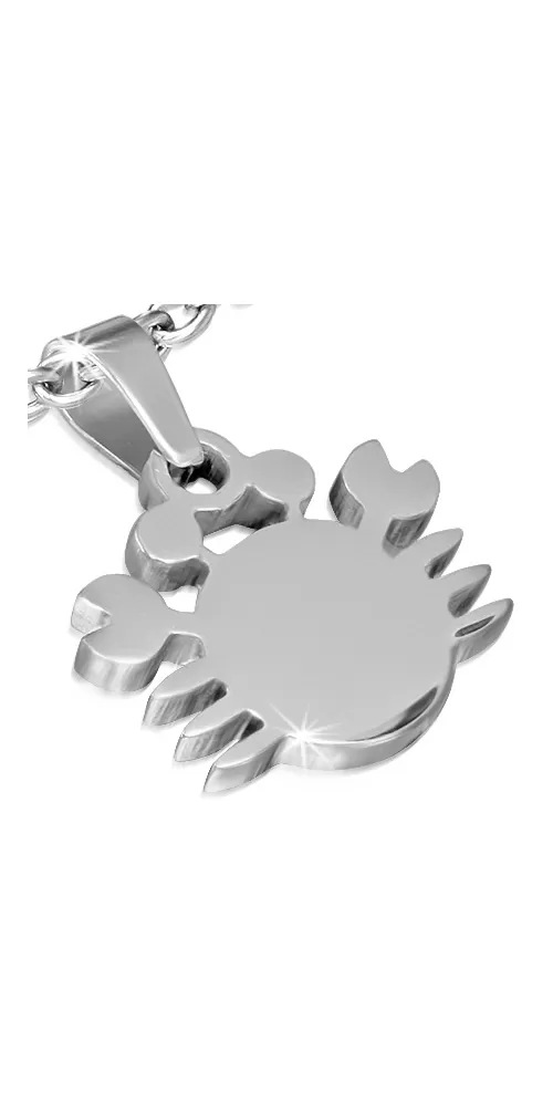 Drobný prívesok v tvare raka je vyrobený z chirurgickej ocele v lesklej povrchovej úprave av striebornej farbe. Týmto príveskom môžete obdarovať tých, čo sú v tomto znamení narodenia.