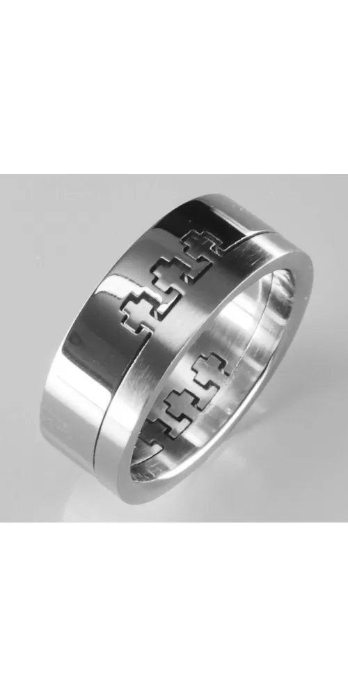 Pánsky prsteň vyrobený z chirurgickej ocele, rovného profilu s kombinovanou povrchovou úpravou lesk/mat.