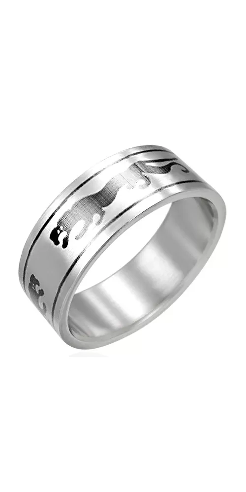 Oceľový prsteň je vyrobený z kvalitnej chirurgickej ocele s motivom šelmy v čiernej farbe v matnej povrchovej úprave.