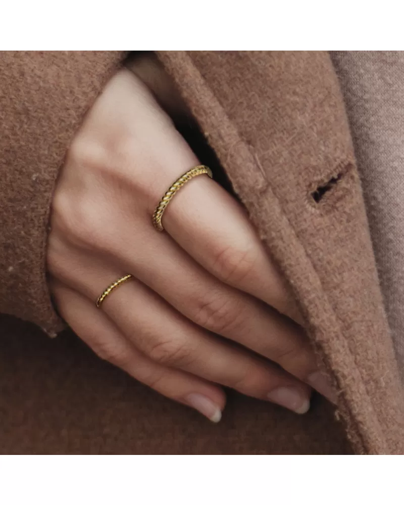 Decentný ale efektný prsteň vhodný na každodenné nosenie je vyrobený z chirurgickej ocele, ktorá je opatrená PVD povrchovou úpravou vo farbe žltého zlata. Prednosťou zlatenia technológií PVD je vysoká tvrdosť a odolnosť proti oteru! Ide o hrubú vrstvu, ktorá preniká do pôvodného materiálu. Zlatenie technológií PVD sa dá porovnať s približne 12 mikrónmi galvanického zlatenia, čo je vysoká hodnota, ktorá pri bežnom nosení vydrží až 12 rokov. Tento dizajn prsteňa sa hodí na každý prst vašej ruky. Ľahko prsteň aj zladíte s ostatnými prsteňmi alebo šperkami.