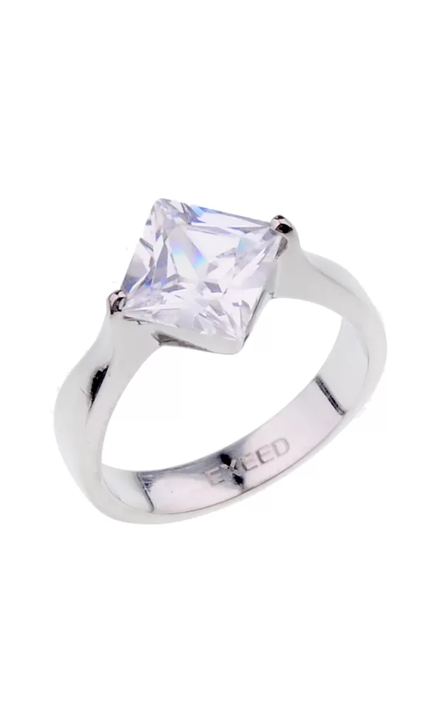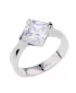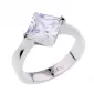 Prsteň vyrobený z chirurgickej ocele v lesklej povrchovej úprave s jedným väčším štvorcovým zirkónom.