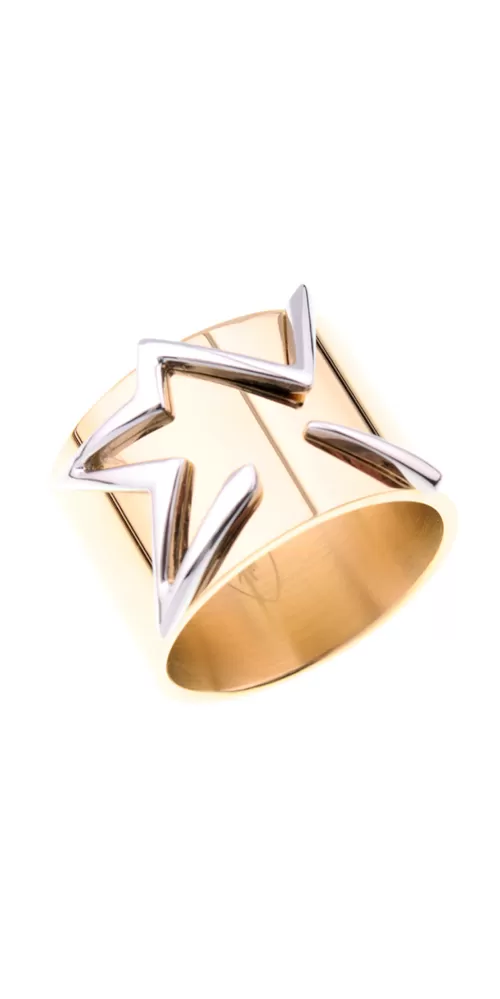 Na tomto prsteni Thierry Mugler je zrejmá súvzťažnosť s jedným z najpredávanejších parfémov na svete a to s Thierryho pýchou parfémom "Angel".  Prsteň je vyrobený z kvalitnej chirurgickej ocele, ktorá vyniká svojou farebnou stálosťou a nespôsobuje alergické reakcie. Prsteň je vyrobený v lesklej povrchovej úprave so silným pozlátením technológií PVD.