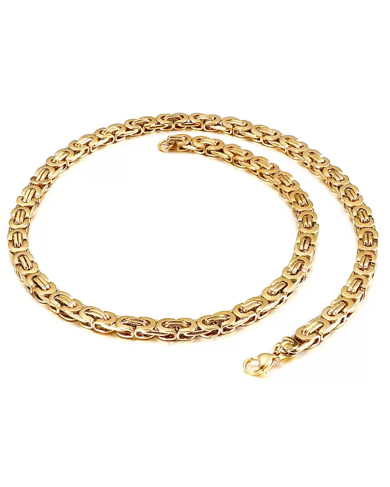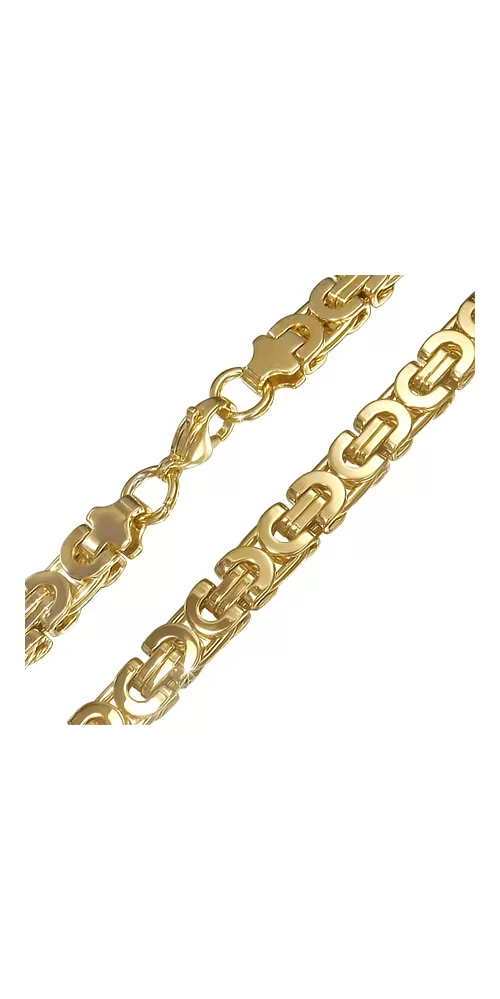 Toto prevedenie tejto retiazky sa nazýva kráľovská plochá väzba. Retiazka je určená pre mužov a vyrobená je z chirurgickej ocele, ktorá je opatrená PVD povrchovou úpravou, ktorá dodáva šperku zlatú farbu. Retiazka sa zapína na karabínku