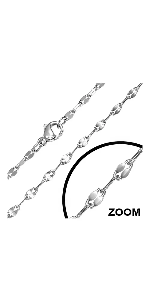 Elegantná retiazka vyrobená z chirurgickej ocele v lesklej povrchovej úprave. Retiazka má tradičné zapínanie na krabinku.