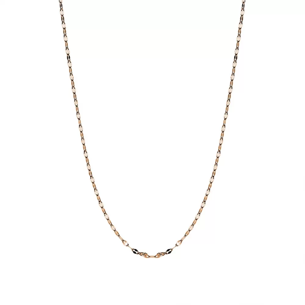Dámsky reťazec vyrobený z vysokej nerezovej ocele. Oceľ je ošetrená povrchovým ošetrením PVD v ružovom zlate. Reťaz je presne spracovaná tak, aby prezentovala akýkoľvek prívesok. Reťaz má dĺžku 80 cm.