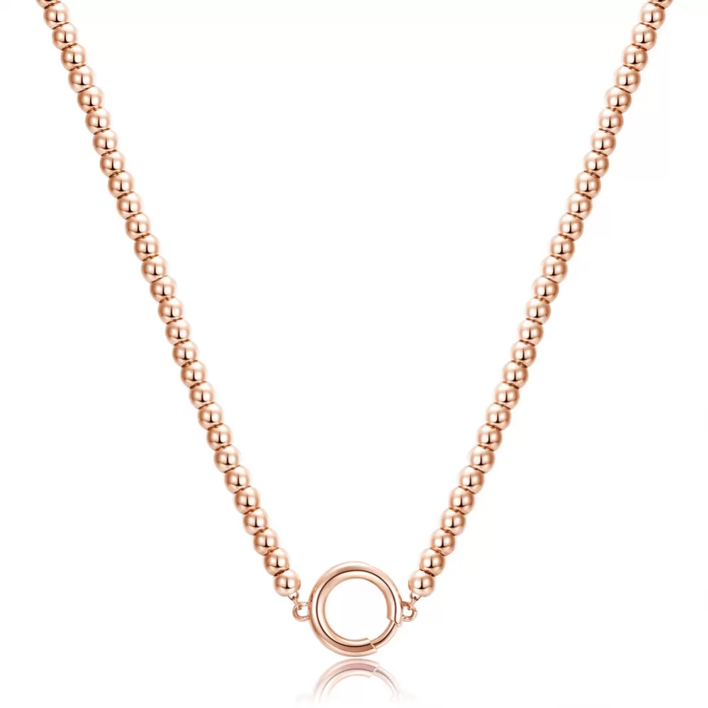 Náhrdelník v jednoduchom dizajne je vyrobený z kvalitnej ušľachtilej ocele v lesklej povrchovej úprave. Oceľ je starostlivo ošetrená PVD povrchovou úpravou vo farbe ružového zlata. Náhrdelník je zdobený lešteným kruhom.