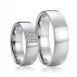 Moderné oceľové snubné prstene mierne pologuľatého profilu s lesklou povrchovou úpravou. V dámskom prsteni je vsadených deväť okrúhlych zirkónov s briliantovým brusom Signity star, ktorý dodáva zirkónom maximálnu brilanciu. Prstene majú vnútorný fit profil - zaoblenú vnútornú stranu pre príjemnejšie nosenie, nasadzovanie a odnímanie.